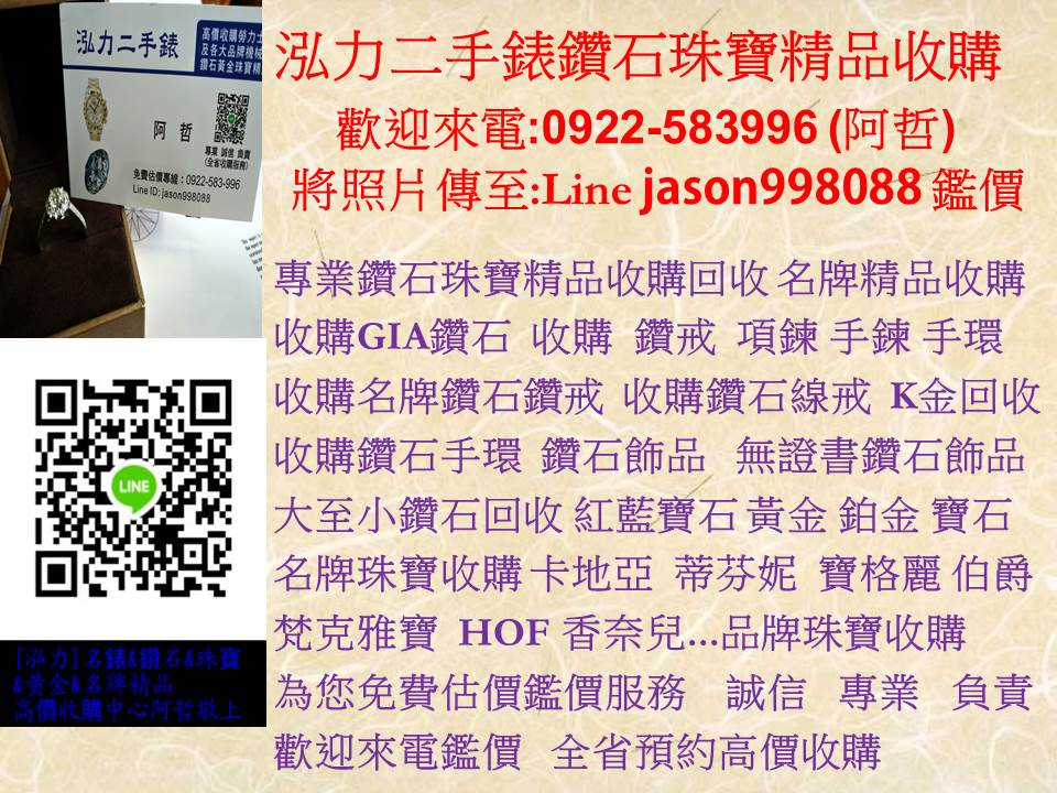 全省高價收購專線:0922583996 阿哲 泓力二手錶鑽石珠寶收購